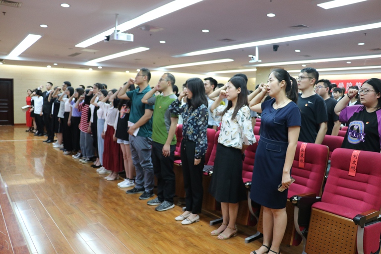 为庆祝中国共产党成立98周年,同时表彰先进,强化教育引领,6月28日下午,管理学院在图书馆一层报告厅举行预备党员入党宣誓暨“不忘初心 牢记使命”主题表彰大会。学院党委书记王永国出席并讲话。院党委委员、学生党支部书记以及全体学生党员参加大会。会议由副处级组织员宋作臣主持。